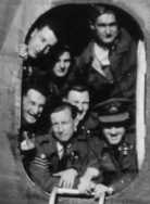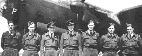 LEFT TO RIGHT: F/E (UK) A/G (NZ) Nav. (NZ) Pilot (NZ) B/M (UK) A/G (Canada) W/Op (NZ)