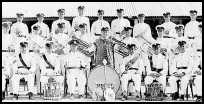 Some of the lads off duty W/O Borley Band Master in charge R.A.F No 205 Group Band 'on parade'